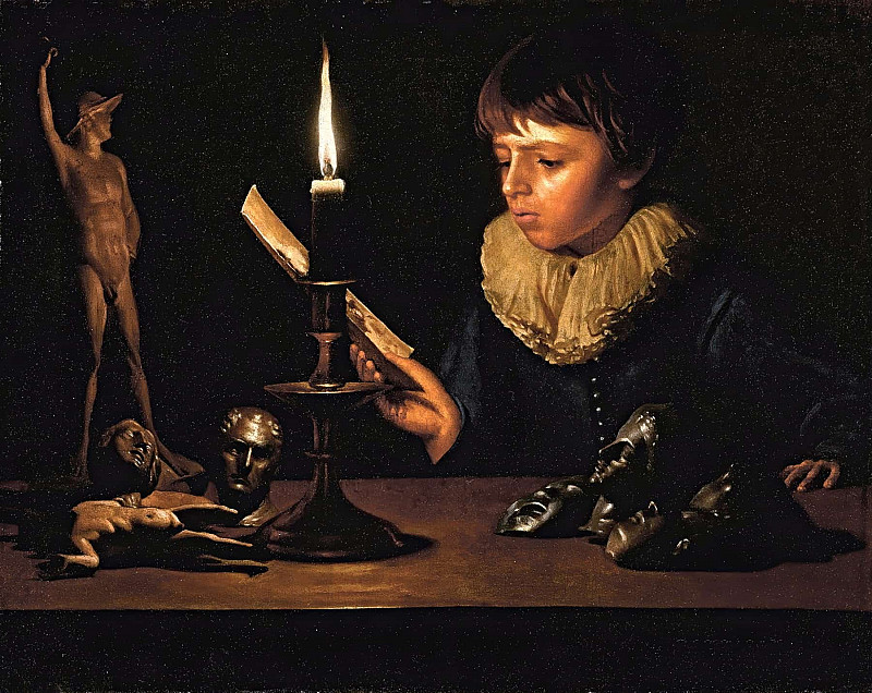 Молодая женщина держит веретено перед зажжённой свечой Адам де Костер (1586-1643)