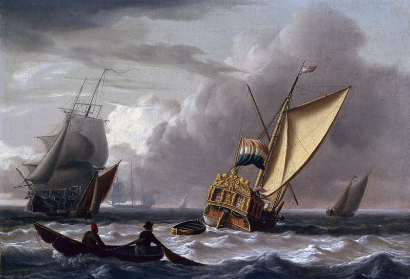 В картине можно усмотреть подтекст, связанный с темой труда и повседневной жизни людей, связанных с морем. Суда, вероятно, занимаются торговлей или рыболовством, но их неторопливое движение говорит о том, что в данный момент они находятся в состоянии покоя. Возможно, это момент отдыха после тяжёлой работы или ожидание попутного ветра.