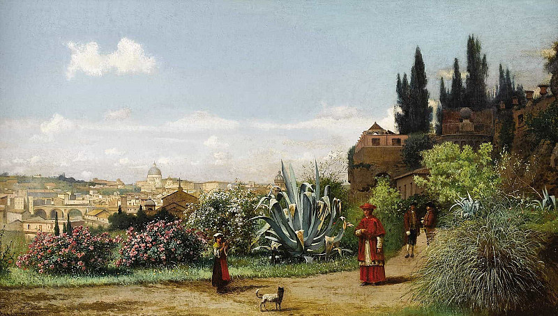 Фридрих Нерли – Римский пейзаж с девушкой и кардиналом