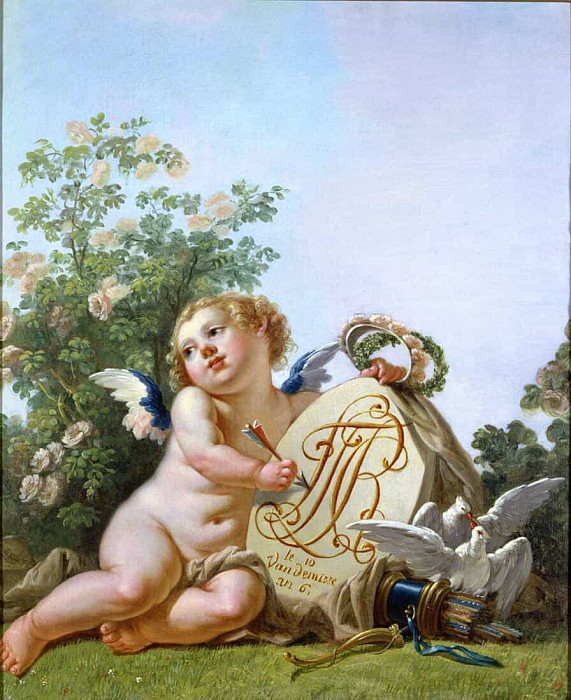 Жан-Батист Юэ – Купидон, отмечающий брак, вырезает на плите переплетённые инициалы FT и RC