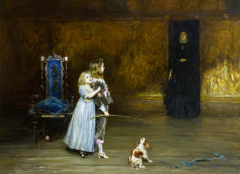 Предмет, который держит молодой человек, представляет собой вышитую ткань с гербом. Это может быть часть одежды, флаг или другой символ, принадлежащий более высокому сословию. Контраст между скромным обликом молодого человека и роскошью предмета создаёт ощущение диссонанса и подчёркивает социальное неравенство.