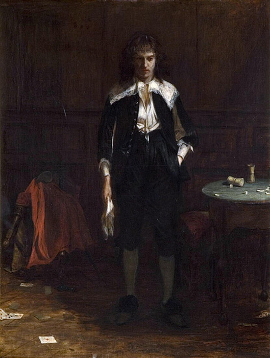 На мой взгляд, картина вызывает ощущение утраты и разочарования. Молодой человек, вероятно, пережил какое-то значительное событие, которое оставило глубокий след в его душе. Карта может быть интерпретирована как метафора потерянных надежд или разрушенных иллюзий. Беспорядок вокруг него символизирует внутренний хаос и неспособность справиться с произошедшим. Цветовая гамма, преобладание тёмных тонов, усиливает ощущение подавленности и безысходности.