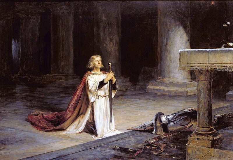 Подтекст картины можно интерпретировать как размышление о моральной ответственности правителя перед своим народом, а также о трагических последствиях конфликтов. Молитва человека в белом одежде может символизировать надежду на искупление или прощение за совершенные ошибки. Лежащий воин олицетворяет собой потерю и разрушение, которые приносят войны. Общая атмосфера скорби и смирения создаёт ощущение глубокой человеческой драмы.