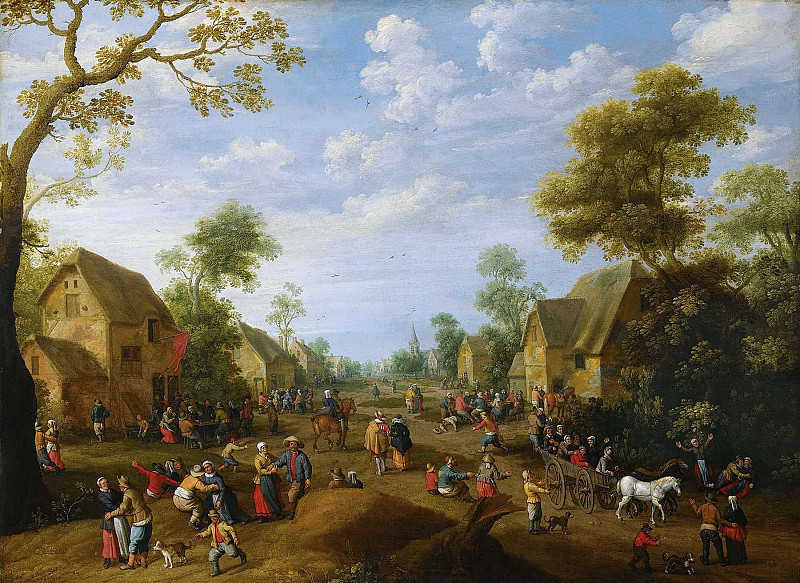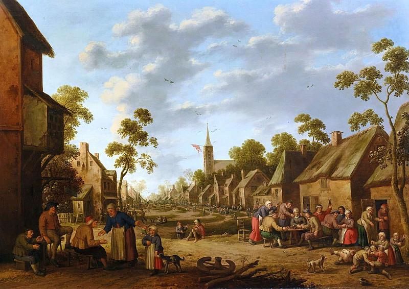 Йост Корнелис Дрохслот – Деревенский праздник с многочисленными крестьянами, пирующими