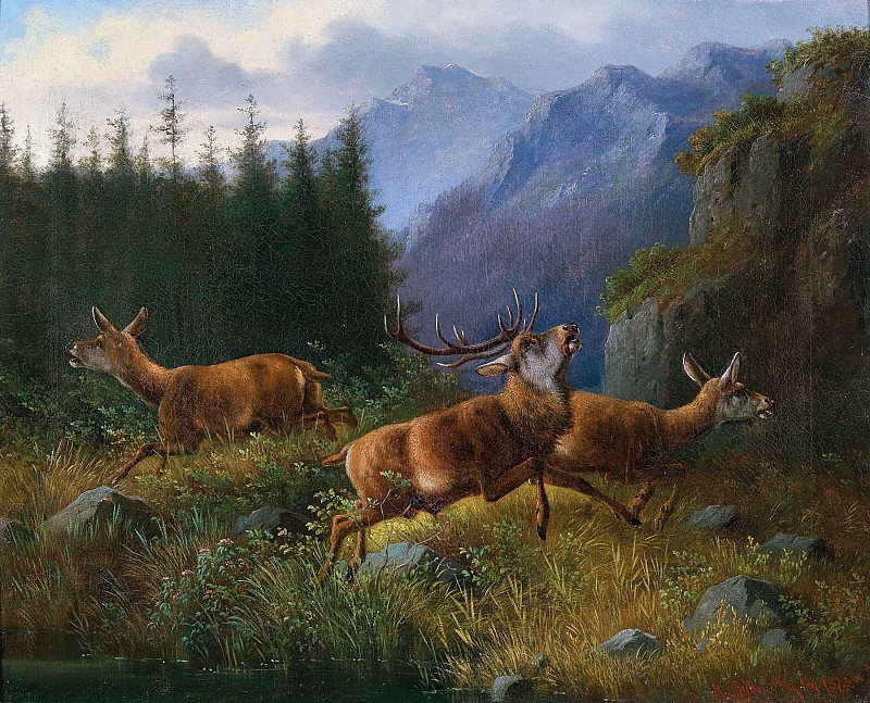 В подтекстовом плане картина может рассматриваться как символ дикой природы, силы и свободы. Олени, как представители царства животных, воплощают нетронутую красоту и мощь природы, противопоставляя ее возможному вмешательству человека. Крик оленя может интерпретироваться как призыв к сохранению природного наследия или выражение тоски по утраченной гармонии с окружающим миром. На мой взгляд, картина вызывает чувство благоговения перед величием природы и напоминает о необходимости бережного отношения к ней.