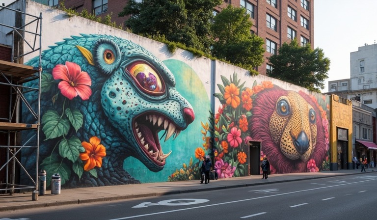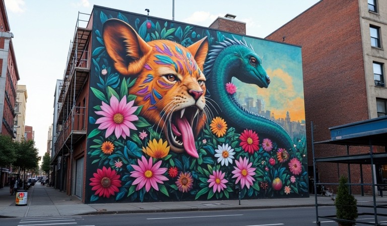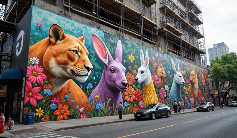 Некоторые художники используют в своих работах анимализм, то есть тематику животного мира. Вписывая с помощью кисти и красок животных в ритм улиц, художник пытается показать населению, как тесно сосуществуют человек с природой. С помощью муралов можно даже популяризировать спорт.