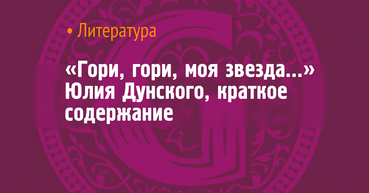 «Гори, гори, моя звезда...» Юлия Дунского, краткое содержание читать ~5 мин.