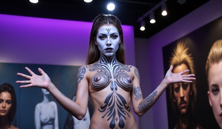 Впервые практикуемая в каменном веке, роспись по телу стала отличительной чертой постмодернистского искусства конца XX века. Примером может служить тромплёйная роспись новозеландки Джоанн Гейр (р. 1958). В частности, созданный ею «Костюм Деми Мур на день рождения» — сфотографированный Энни Лейбовиц — появился на обложке журнала Vanity Fair в августе 1992 года.