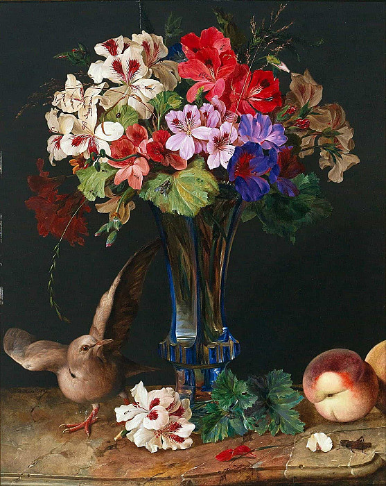 Фердинанд Кюсс – Натюрморт с корзиной фруктов и пчелой