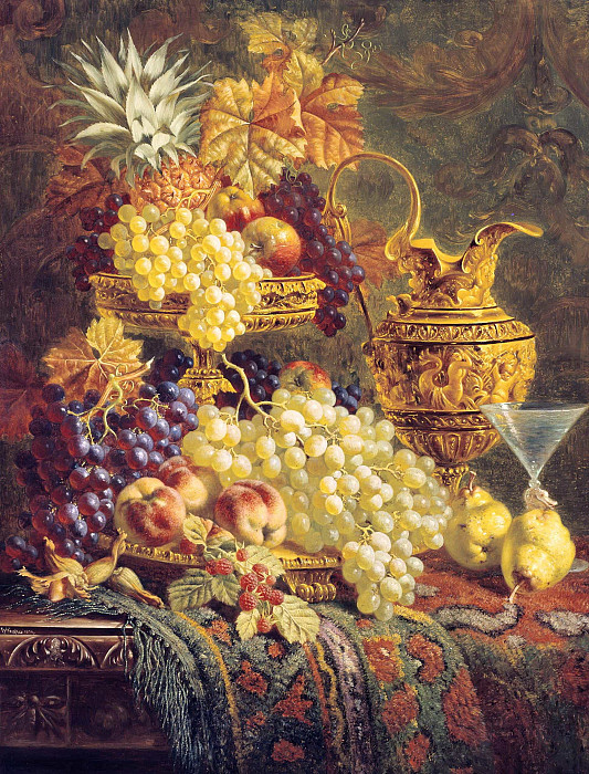 Уильям Хьюз – Виноград, яблоко, груша и птичье гнездо на мшистом берегу
