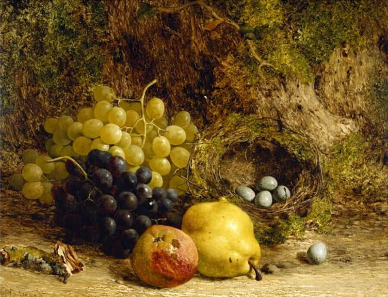 Уильям Хьюз – Виноград, груша, персики и птичье гнездо у мшистого берега