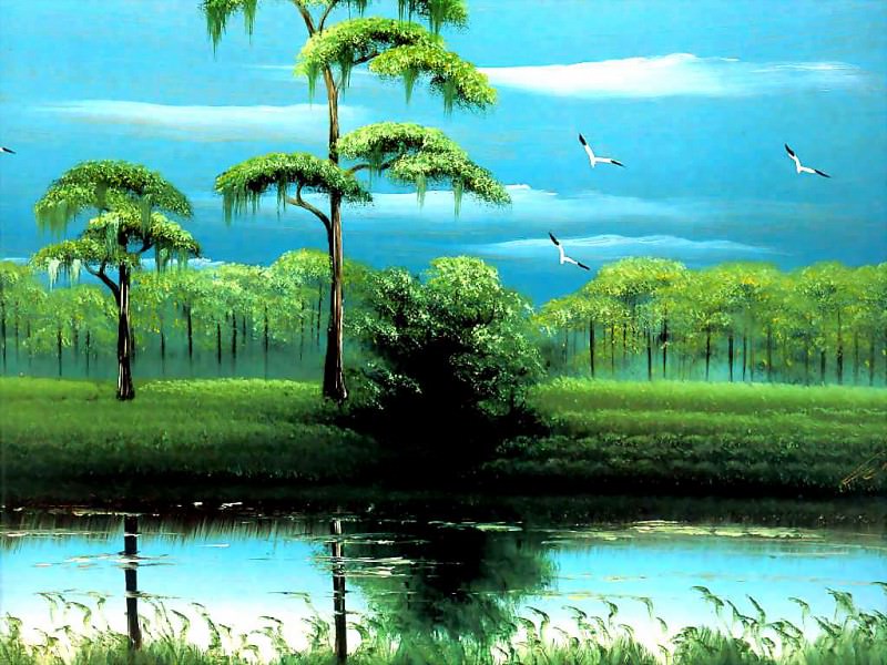 На картине есть что-то из этого: дерево, воды, пейзаж, природа, озеро, отражение, река, рассвет, тропический, трава, бассейн, на открытом воздухе, лето, небо, лист, дерево, пляж, окружающая среда.