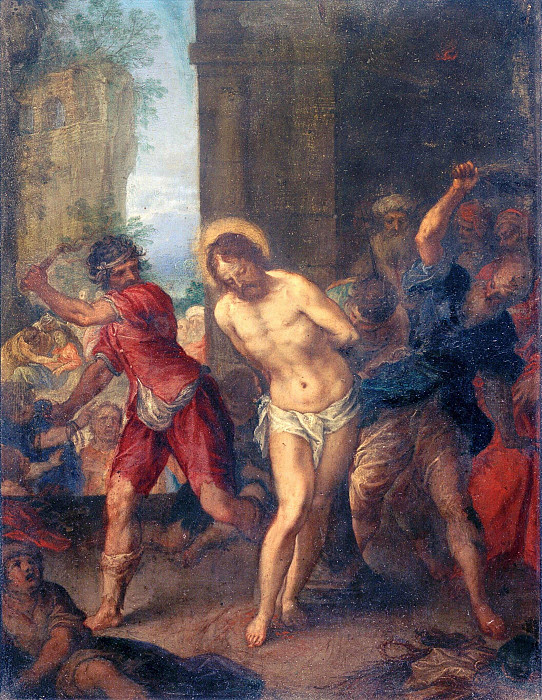 Композиция картины построена на контрасте: мощь и благородство центральной фигуры противопоставлены слабости и отчаянию поверженного человека. Использование света и тени усиливает драматизм сцены, выделяя ключевые элементы и создавая ощущение напряжения. Цветовая гамма, преобладание синего и золотого цветов в доспехах, а также тёплые тона кожи, добавляют картине торжественности и значимости.