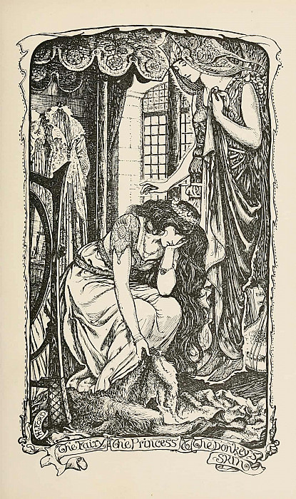 В верхней части гравюры, сквозь облака, просматривается силуэт фигуры, напоминающей женский облик, но выполненный в более абстрактной манере. Этот образ может символизировать божественное начало, ангельское существо или просто олицетворение сказочного мира.