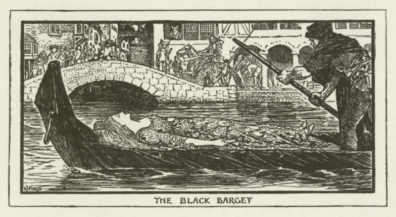 Стилистика рисунка тяготеет к иллюстративному искусству поздней викторианской эпохи, характеризующемуся чёткостью линий, детализацией и вниманием к костюмам и декорациям. Использование монохромной гаммы подчёркивает драматизм сцены и акцентирует внимание на выражении лиц персонажей.