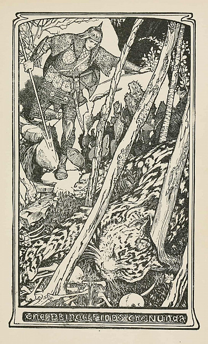 На представленной гравюре изображена сцена с двумя персонажами: молодым мужчиной и женщиной. Мужчина одет в богатый наряд, включающий камзол, плащ и высокую шапочку, что указывает на его знатное происхождение – вероятно, он является принцем или представителем высшего сословия. Он стоит, слегка наклонившись вперёд, держа младенца на руках и поднося к его рту флягу. Выражение лица мужчины сложно интерпретировать: в нем угадываются одновременно нежность и некоторая растерянность.