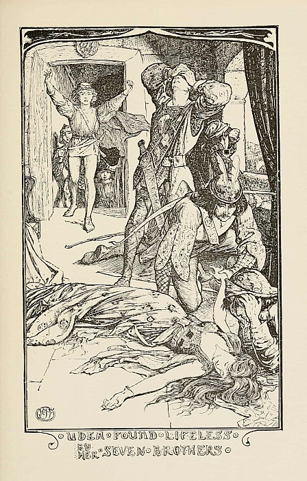 На представленном рисунке мы видим сцену, разворачивающуюся в мрачном, непроглядном лесу. Композиция построена вокруг двух центральных фигур: женщины и человекоподобного существа, сидящего у костра.