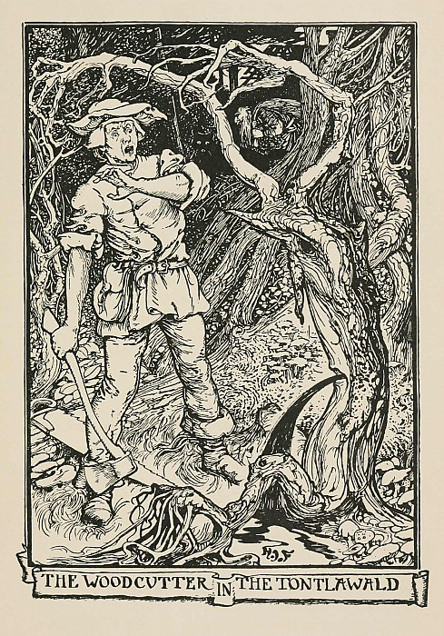 На представленной гравюре мы видим группу фигур, объединённых общей темой веселья и, вероятно, колдовства. Композиция построена вокруг центрального дерева с раскидистыми ветвями, служащего своеобразным фоном для происходящего.