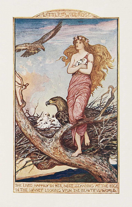 На представленной гравюре мы видим сцену прощания, разворачивающуюся в конюшне. В центре композиции – две фигуры: мужчина и женщина. Мужчина, судя по его внешности, старше женщины. Его лицо изборождено морщинами, волосы длинные и седые, а взгляд выражает смесь печали и решимости. Он одет в просторные одежды, ниспадающие складками, что придаёт ему вид человека знатного происхождения или даже волшебного существа. Женщина молода и изящна, одета в струящееся платье с декоративными элементами. Она протягивает руку к мужчине, словно пытаясь удержать его.