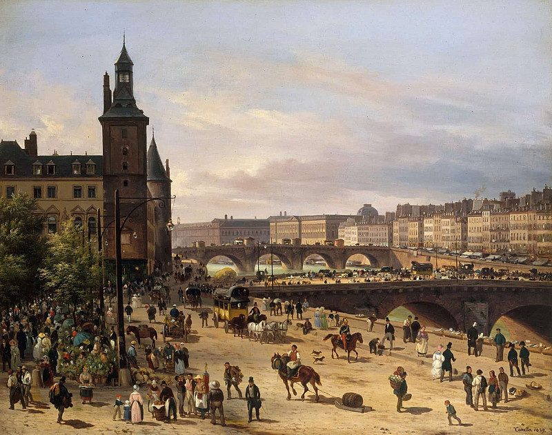 В изображении присутствует социальный контекст: люди одеты в одежду, характерную для определённой эпохи – элегантные платья дам, фраки господ. Это указывает на принадлежность сцены к высшим слоям общества и создаёт ощущение утончённости и благополучия. Наличие карет и лошадей подчёркивает статус изображённых людей и их связь с традиционным образом жизни.