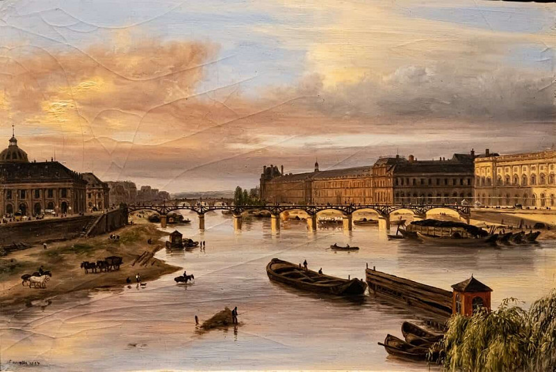 Картина разделена на две части аркадными проходами, поддерживаемыми массивными колоннами. Эти арки создают перспективу и направляют взгляд зрителя к центральному объекту композиции. В правой части картины видны фигуры людей, движущихся в глубине пространства, что добавляет динамизма изображению.