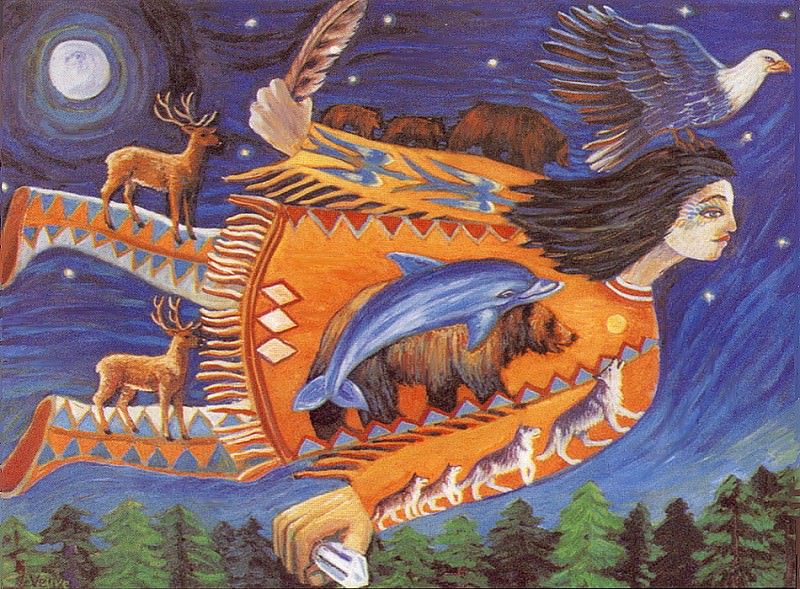 Образ существа вызывает ряд вопросов и интерпретаций. Слияние человеческого и животного начала может символизировать связь человека с природой, утраченную или нуждающуюся в восстановлении. Одежда, выполненная в традиционном стиле, указывает на культурные корни и связь с предками. Букет цветов – это символ жизни, красоты и хрупкости окружающего мира. Птица, парящая над фигурой, может олицетворять духовную свободу или послание от высших сил.