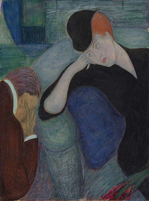 В картине можно уловить намёк на влияние восточной культуры, что проявляется в причёске модели и общей цветовой гамме. Возможно, автор стремился передать ощущение хрупкости и нежности женского образа, сочетая его с элементами экзотики и загадочности. Картина оставляет впечатление мимолётного впечатления, запечатлённого на холсте, словно случайный момент из жизни.