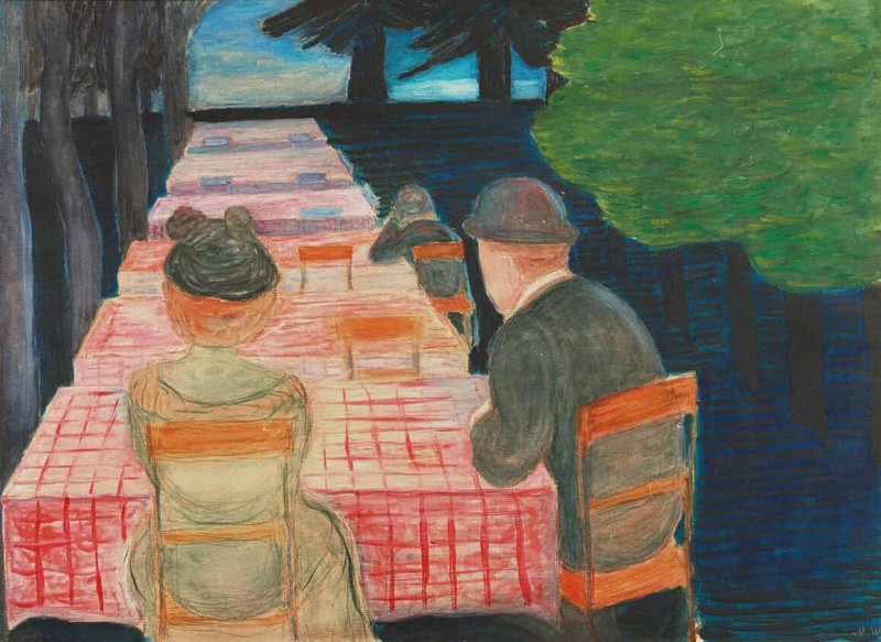 В подтексте картина может трактоваться как метафора человеческого состояния – стремление к теплу и уюту в условиях жизненных бурь. Кафе выступает символом надежды и защиты, а фигуры людей – олицетворением обычных смертных, ищущих спасения от невзгод. Использование тёмной цветовой гаммы и динамичной манеры письма усиливает ощущение тревоги и неопределённости, характерных для человеческого существования.