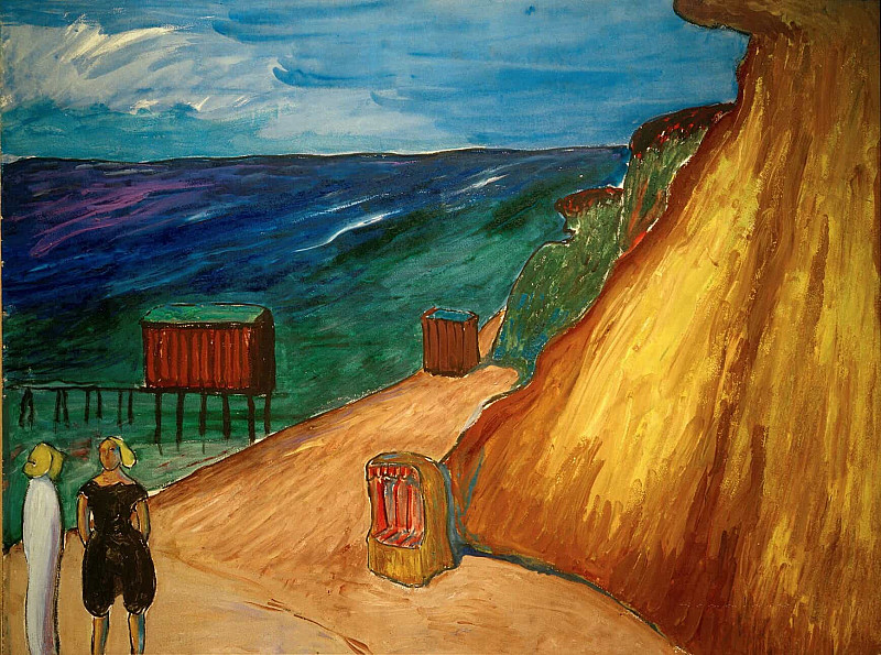 Цветовая гамма картины выдержана в приглушённых тонах: преобладают оттенки серого, коричневого и чёрного. Это создаёт атмосферу меланхолии и отчуждения. Тёмный фон усиливает контраст с бледными тонами пейзажа и фигуры человека, выделяя их на общем фоне.