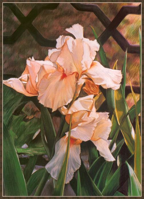 В правой части картины присутствует фрагмент кованого забора, который служит визуальным ориентиром и подчёркивает структуру композиции. Он создаёт ощущение уединённости и защищённости.