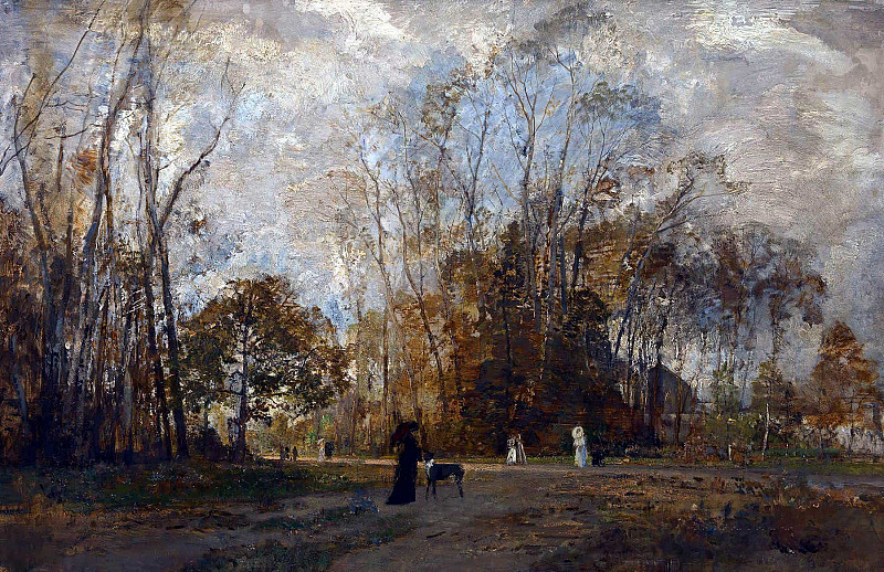 Эмиль Якоб Шиндлер – Этюд с животными – Пейзаж с фермерским домом, коровами и женой фермера
