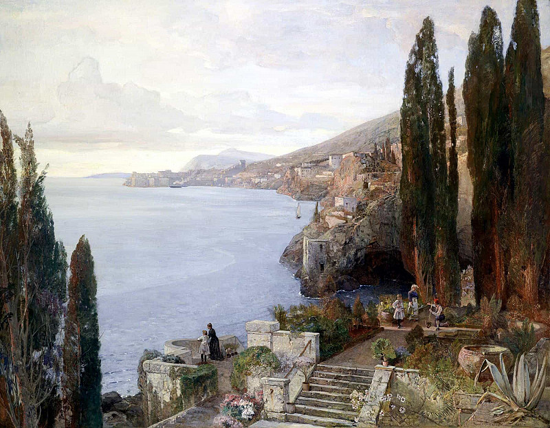 Художник использует приглушённые тона, что способствует созданию атмосферы меланхолии и умиротворения. Манера письма характеризуется широкими, свободными мазками, придающими картине фактурность и динамизм.