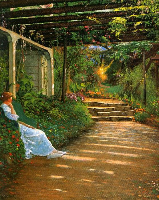На мой взгляд, картина излучает атмосферу покоя, благополучия и гармонии с природой. Подтекст работы может быть связан с идеей о связи человека с землёй, о важности уединения и созерцания природы. Использование классических архитектурных форм в сочетании с естественным ландшафтом создаёт ощущение стабильности и вневременности. Картина вызывает чувство ностальгии по утраченному раю или идеализированной жизни на природе.