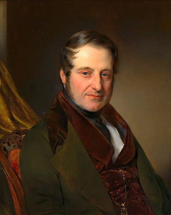 На представленной картине изображён мужчина зрелого возраста, выполненный в жанре парадного портрета. Он повёрнут вполоборота к зрителю, что позволяет рассмотреть его лицо и плечи. Фон картины тёмный, однотонный, лишённый деталей, что акцентирует внимание на фигуре модели.