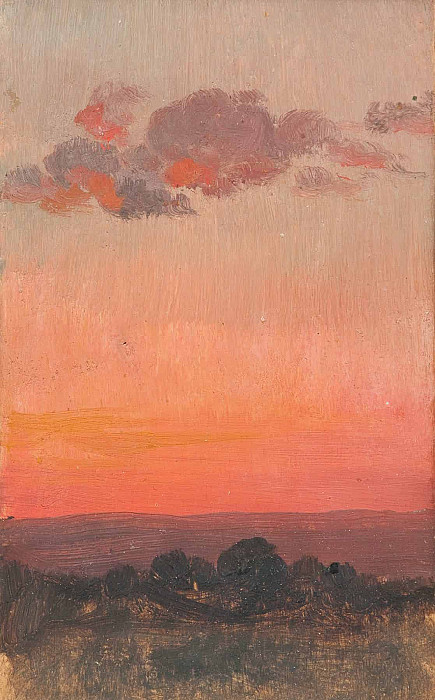 На картине представлен пейзаж, пронизанный ощущением знойного летнего дня. В переднем плане – группа подсолнухов, склонившихся к земле под тяжестью своих головок. Их яркие, насыщенные жёлтые и оранжевые тона контрастируют с приглушёнными оттенками зелени и коричневого, создавая ощущение глубины пространства.